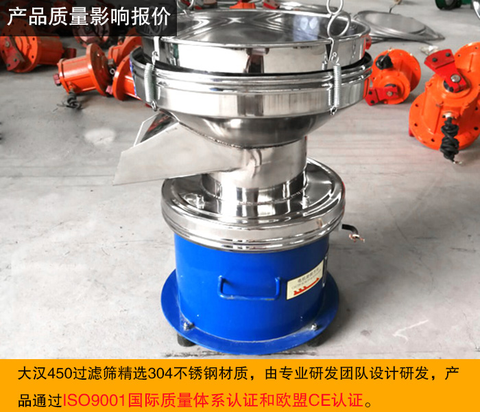 新鄉(xiāng)大漢450過濾篩精選304不銹鋼材質(zhì),原材料選取做到優(yōu)中選優(yōu),符合產(chǎn)品的性能要求,由專業(yè)研發(fā)團(tuán)隊(duì)設(shè)計(jì)研發(fā),要專門的質(zhì)量檢測部門嚴(yán)格監(jiān)管產(chǎn)品生產(chǎn)的各個(gè)環(huán)節(jié),以確保優(yōu)質(zhì)的產(chǎn)品質(zhì)量,大漢公司450過濾篩通過ISO9001國際質(zhì)量體系認(rèn)證和歐盟CE認(rèn)證。