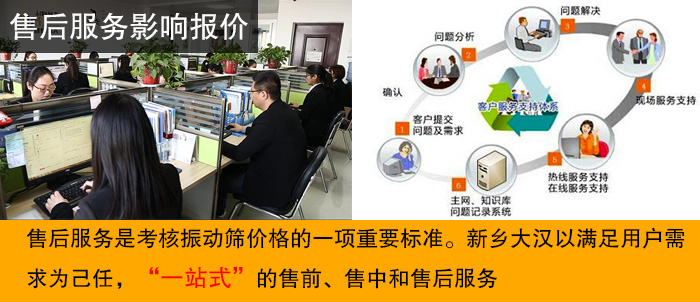 售后服務(wù)是考核振動(dòng)篩價(jià)格的一項(xiàng)重要標(biāo)準(zhǔn)。但話說回來售后服務(wù)也只有合作了才知道。但我們在購買前期可以通過視頻、圖片、實(shí)地考察等形式來判斷該企業(yè)是否具有生產(chǎn)能力及售后服務(wù),新鄉(xiāng)大漢以滿足用戶需求為己任,“一站式”的售前、售中和售后服務(wù),不斷對用戶體驗(yàn)進(jìn)行改善和提升,以優(yōu)質(zhì)的品質(zhì)和周全的服務(wù)贏得了國內(nèi)外用戶的一致好評,現(xiàn)有用戶已遍布全球30多個(gè)國家,設(shè)備保修期為1年。