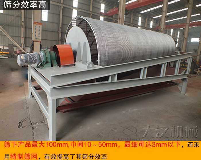 以上四點即是對滾筒篩這一設(shè)備的篩分效果的分析,另新鄉(xiāng)大漢機械可支持客戶定制,我們的設(shè)計師可以根據(jù)客戶的實際需求,采用不同篩網(wǎng)材質(zhì)、篩孔尺寸,設(shè)計出各種規(guī)格型號的滾筒篩,歡迎廣大用戶前來選購。