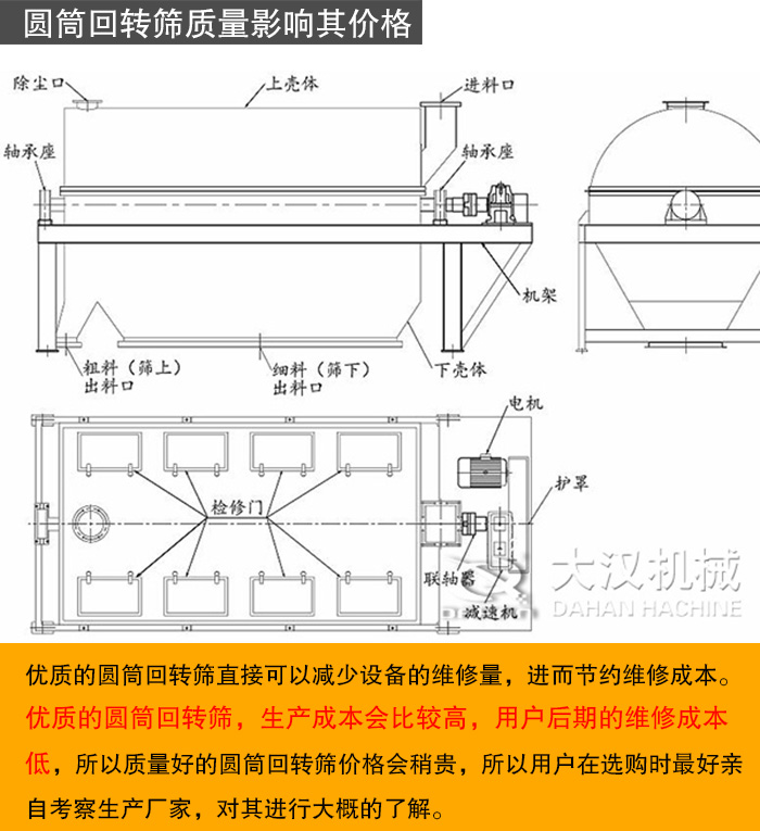 以上即是對圓筒回轉(zhuǎn)篩價(jià)格的分析,新鄉(xiāng)大漢作為圓筒回轉(zhuǎn)篩直銷廠家,無中間商賺取差價(jià),價(jià)格優(yōu)惠且相較合理,產(chǎn)品是直接面向客戶的,設(shè)備質(zhì)量通過ISO9001國際質(zhì)量體系認(rèn)證和歐盟CE雙認(rèn)證,售后服務(wù)好,是值得用戶信賴的合作伙伴。