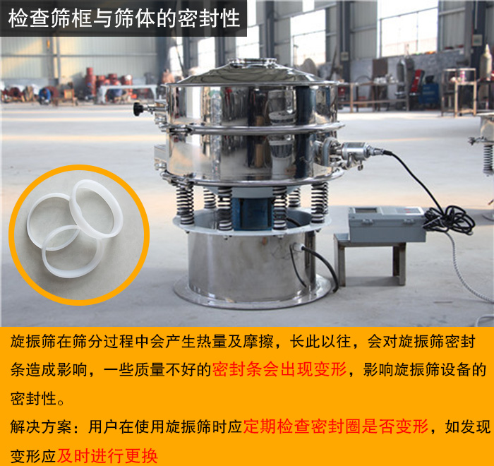 旋振篩除了采用全密閉的結(jié)構(gòu)來確保其密封性能,一般還會在篩框與篩體之間用密封條來對旋振篩進行密封防塵,而振動篩密封條材質(zhì)主要有橡膠材質(zhì)和硅膠材質(zhì),但是旋振篩在篩分過程中會產(chǎn)生熱量及摩擦,長此以往,會對旋振篩密封條造成影響,一些質(zhì)量不好的密封條會出現(xiàn)變形,影響旋振篩設(shè)備的密封性。一旦密封性不好,在篩分過程中就會出現(xiàn)混料現(xiàn)象。所以大漢機械建議用戶在使用旋振篩時應(yīng)定期檢查密封圈是否變形,如發(fā)現(xiàn)變形應(yīng)及時進行更換。