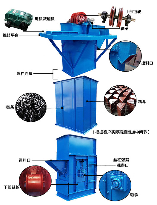 板鏈斗式提升機(jī)是垂直提升設(shè)備,料斗與料斗之間使用板狀鏈條 ...