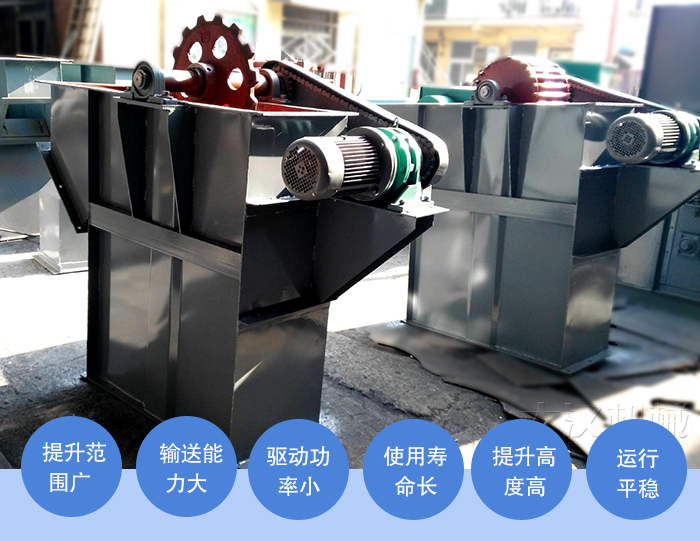 這類提升機對物料的種類、特性及塊度的要求少。不僅能提升一般粉狀、粒狀和塊狀物料,而且可提升磨琢性大的物料。物料溫度≤250度;