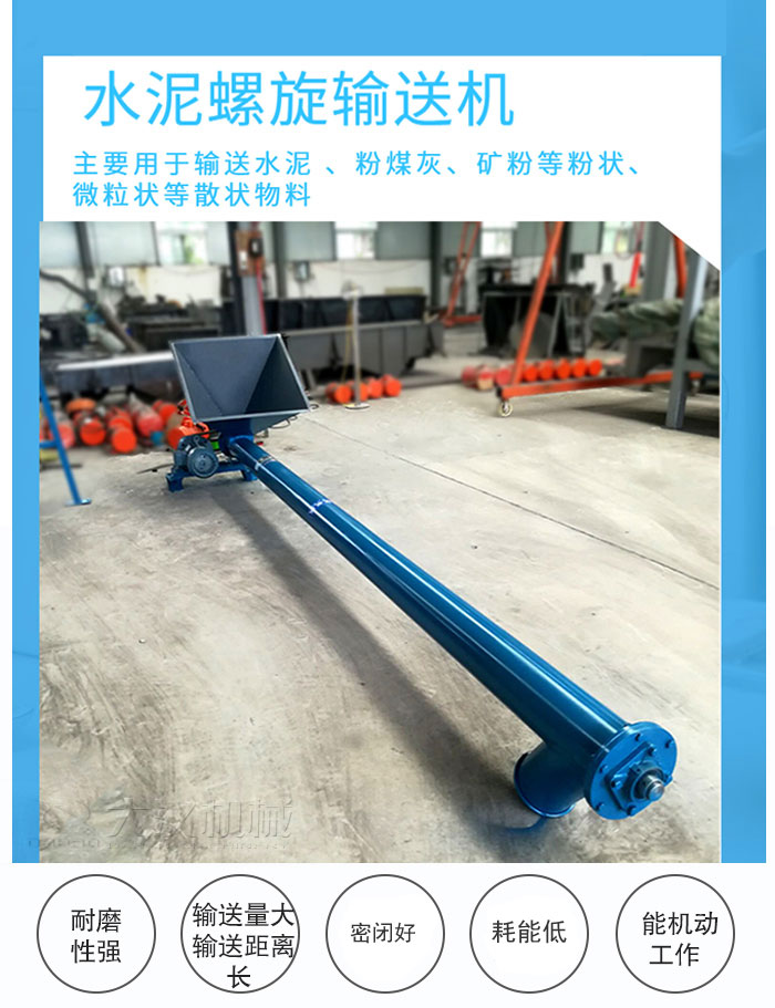 水泥螺旋輸送機(jī)是一種封閉管內(nèi)利用旋轉(zhuǎn)連續(xù)螺旋葉片帶推送物料的輸送機(jī)械,主要用于輸送水泥 、粉煤灰、礦粉等粉狀、微粒狀等散狀物料,不宜輸送粘性大、易結(jié)塊、纖維等原料,可以按照用戶輸送現(xiàn)場情況分為水平、傾斜及垂直方向的輸送,常用于水泥攪拌站中。
