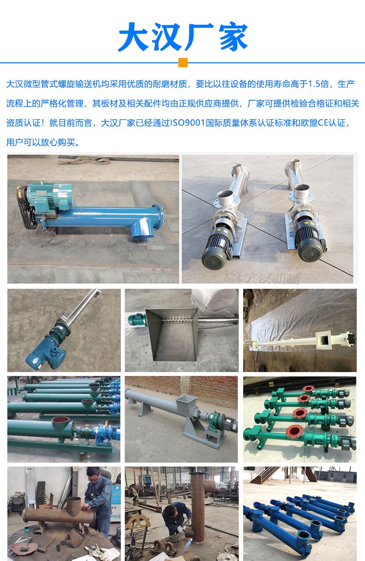 簡述:微型管式螺旋輸送機根據(jù)每小時輸送量在1-18立方,直徑有100mm、125mm、160mm、200mm,主要用于小批量粉狀物料的均勻連續(xù)供料、卸料